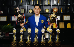 (图:许庆与获得的荣誉奖杯合照)