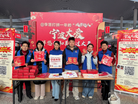 今年,中国太保寿险宁波分公司联合宁波市总工会、中国铁路上海局集团有限公司宁波车务段、宁波民生e点通等多家单位,在铁路宁波站二楼候车厅设立爱心服务点。2月2日至3日,志愿者们化身为“暖心使者”,为旅客送上特别准备的“幸福回家大礼包”。礼包内不仅有实用的文创用品,还贴心地准备了具有宁波特色的美食,共发放1.6万份,把浓浓的年味和真挚的祝福装进旅客的行囊。