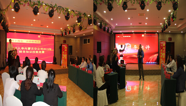9月15日,内蒙古分公司财务首届知识技能竞赛如期开赛,来自分公司及八家中支的9名财务精英参加了本次比赛。分公司总经理吴宇、客户服务部负责人周晓红、办公室负责人刘昌、财务部负责人韩莹光共同担任本次比赛的评委和颁奖嘉宾。本次竞赛是积极响应集团及寿险总公司开展“喜庆十周年 出彩阳光人”劳动竞赛活动,由分公司工会牵头,办公室党群工作部、财务部具体落实,并得到分公司总经理室的高度重视。