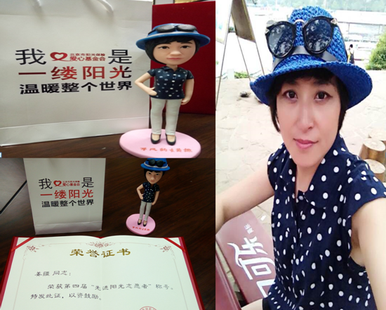 2016年1月21日,呼伦贝尔中支收到由总公司寄送给衔寻岗姜疆的“先进阳光志愿者”荣誉证书、仿真人像以及小礼品。在仿真人像的底座上,刻有“平凡女英雄”的字样,用以表彰姜疆同志在2015年为患白血病的大学生捐献血小板,从而挽救了一个鲜活的生命行为。