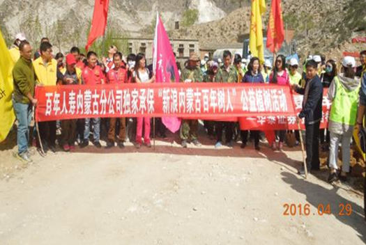 2016年4月30日,内蒙古园林局与新浪内蒙古网联合举办了第三届公益植树节活动,百年人寿内蒙古分公司作为主办方唯一指定的保险机构独家承保此次活动,为130位参与绿色公益事业的人员免费提供意外险保障服务,为植树活动的顺利举行和开展保驾护航。本次活动也是百年人寿内蒙古分公司2016年低碳健康季的一项重要内容。