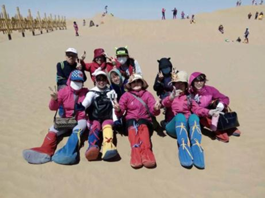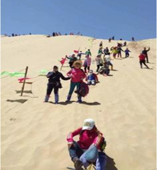 在大家的徒步过程中,沿途经过沙地、沙山等地形,虽然大家有点疲惫,但没有停下行走的脚步,大家相互搀扶,共同向前。驻足休息期间,远远可看到沙漠之舟——骆驼,一些精力旺盛的队友在沙漠上游戏,让行走的旅程愉悦了许多。通过此次活动,大家不仅愉悦了身心,最主要的是让低碳健康的理念得以灌输,为保护绿色生态环境出力。