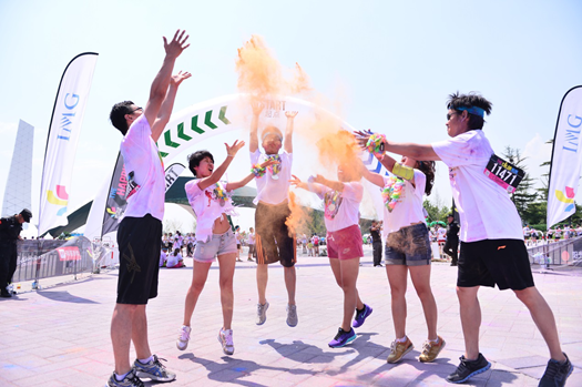 彩色跑北京站作为中国区参赛规模最大的一站,每年都会吸引近3万跑友参加。主办方根据路线,在每公里设置一个彩色站,分别为黄色、绿色、红色、蓝色,当参加者跑步至每个彩色站时,由工作人员向参加者抛洒不同颜色的“彩色炸弹”,参加者还可以在跑步中随意抛洒手中的紫色粉末,整个现场呈现出五彩斑斓的画面。到达终点后,所有参加者将手中的彩色粉抛向空中,形成一道绚丽的彩虹,打造最炫酷、最疯狂的彩色派对。在跑步现场,阳光保险还特别组织了阳光跑团和阳光志愿者一起奔跑,向大家传递“阳光下奔跑”的健康理念。