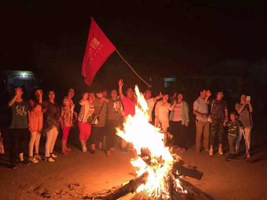 行走至人民公园,此处正在举办热闹的篝火晚会,徒步队伍纷纷加入晚会,围着篝火,随着音乐的节拍,一起跳起了圈舞。在夜色下,在篝火旁,徒步队伍尽情的跳唱,释放压力,释放激情,放松自我。