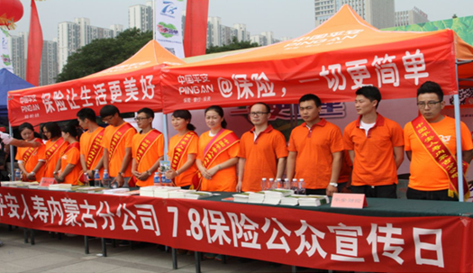 平安产险在内蒙古分公司及中支分别在职场悬挂宣传条幅,摆放宣传海报、宣传手册及宣传展板,让公众切身体验到保险“以人为本”的服务理念和人性化的服务举措,全面提升行业形象。