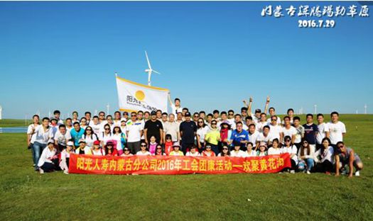 草原之情 传递阳光之爱,为体现公司关爱文化,丰富员工的业余文化生活,阳光人寿内蒙古分公司于7月29日至30日组织全体员工举办2016年工会团康活动。内蒙古分公司总经理室全体领导、分公司各部门长及呼市地区全体员工共同参加此次活动,展现阳光集体关爱之情。