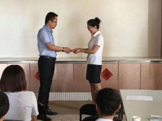 鄂尔多斯中支此次获得奖章的员工为财务管理组刘敏,中支负责人刘钟歆为刘敏颁发了奖章,财务管理组刘敏入司五年以来,一直兢兢业业、勤勤恳恳为公司服务,五年来,一直为我司优秀员工。