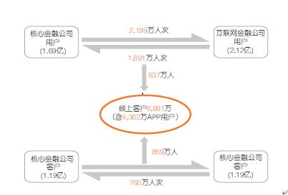 注:横向迁徙指核心金融公司的互联网服务平台的用户与互联网金融公司的用户间相互迁徙以及核心金融公司客户间的相互迁徙。纵向迁徙指核心金融公司客户向互联网用户的转化以及互联网用户向核心金融公司客户的转化,详细数据见公司业绩报告。
