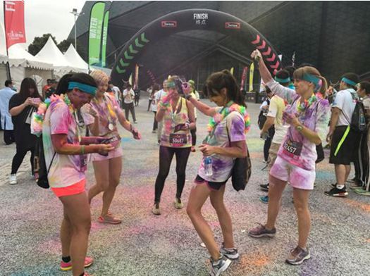 彩色跑深圳站作为2016年收官之站,为跑友们带来了更多意想不到的惊喜。深圳这座年轻、活力的创新之城诠释了此次彩色跑全新的“热带炫彩环球之旅”主题,创造性地让阳光、欢乐与色彩在主题公园式的彩色跑道上尽情迸发。深圳跑者带着亲朋好友一起踏上全球同步的热带主题炫彩跑道,伴随律动节拍在海风椰树和彩色站、泡泡站间自由穿梭,尽享阳光与欢乐。冲刺终点后,所有的跑友都在DJ的节奏感染下,将彩色粉抛洒向天空,一齐释放自我,见证最精彩的终点派对。