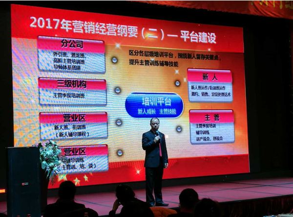 在精彩的颁奖礼之后,由吴宇做路演报告《抢财富 开门一亿 续辉煌 稳赢一七》,吴宇总在报告中首先分析和总结了2016年兴安中支取得的成绩,继尔在“变革、创新、发展、求真、务实、合规”十二字方针的指引下,开始展望2017年分公司的工作规划和兴安中支的工作规划。吴宇诙谐幽默的讲解,引发伙伴们阵阵热烈的掌声。吴宇详细严谨的解读关于文化的建设,没有文化的团队是没有灵魂的团队,没有文化的团队是不会有持久战斗力的团队。吴宇语重心长的和伙伴们沟通,晋升文化、达星文化、服务文化、专业文化的打造,会使我们寿险生涯之路越走越好,越走越稳健!目标引领方向,勤勉铸就信心,有了明晰的目标,伙伴们信心倍增,相信在领导的正确指引下,在兴安伙伴的辛勤努力下,2017年注定是一个不平凡的一年。
