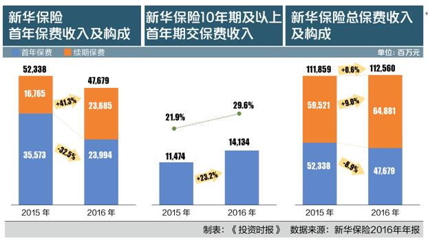 净利润下降源自新华保险主动“调结构”。万峰表示,2016年,新华保险聚焦期交业务,大幅缩减趸交业务,致力于建立续期业务拉动增长模式。