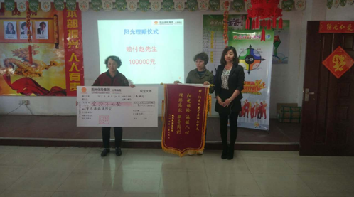 客户池女士于2016年4月28日为其丈夫赵先生投保《阳光人寿孝顺保恶性肿瘤疾病保险》,保额100000元。天有不测风云、人有旦夕祸福,2017年3月2日,巴盟中支收到客户池女士的报案信息,被保险人赵先生于2017年2月28日被确诊为重疾。在接到客户报案后,巴盟中支理赔人员积极协助客户准备各项理赔资料,并第一时间积极约访客户进行情况核实并向总公司上报,在最短时间内向客户给付身故保险金10万元整。