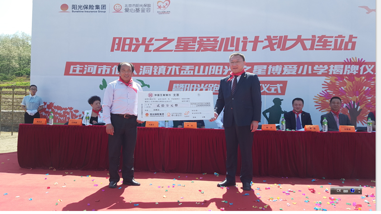 5月24日,由阳光保险“阳光之星爱心计划”捐助的大连庄河市“阳光之星博爱小学”揭牌仪式在庄河市仙人洞镇木盂山小学顺利举行。这是阳光保险旗下“阳光之星爱心基金”成立以来捐建的第17所“阳光之星博爱小学”,也是阳光保险在全国范围内捐建的第39所博爱学校。庄河市政府常务副市长,扶贫办、教育局、金融局相关领导,大连保险行业协会、阳光保险相关领导及《中国保险报》等主流媒体共同参加了活动。