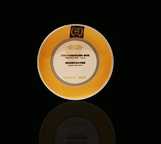中国,内蒙古自治区呼和浩特,由北京《LifeStyle品味生活》杂志携手中国酒店领袖论坛共同举办的2016第6届CHA中国酒店大奖颁奖典礼在北京圆满结束。呼和浩特万达文华酒店荣获国内豪华类“最佳会议酒店”殊荣。