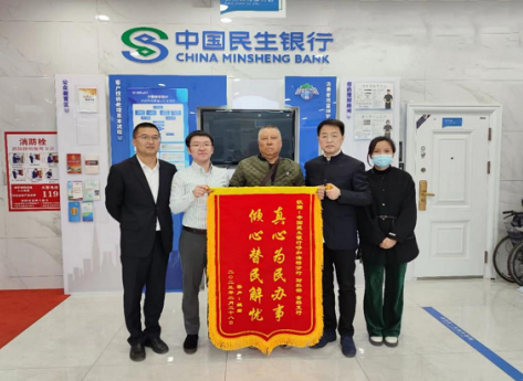 3月1日,客户家属丁先生将一面印有“真心为民办事,倾心替民解忧”的锦旗送至民生银行呼和浩特金桥支行,感谢分行高效贴心的金融服务。