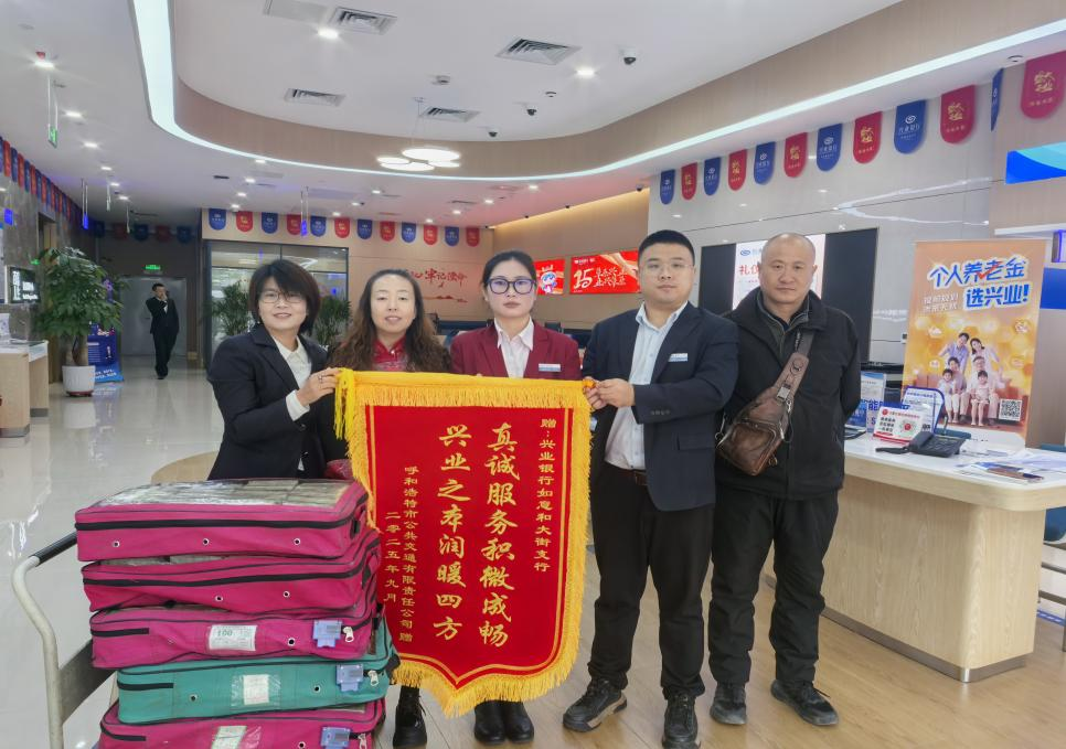 近日,兴业银行呼和浩特分行下辖如意和大街支行迎来一项特殊挑战——受理完成呼和浩特市公交公司一笔数量庞大的零钱缴存清点业务。面对如小山般堆积的1元、5角、1角等面额的零钱,支行员工高效协作,展现出专业的服务能力,受到了公交公司赠予的一面写有“真诚服务积微成畅,兴业之本润暖四方”的锦旗,这是对该行“助力公交畅行,彰显金融担当”的高度认可与赞扬。