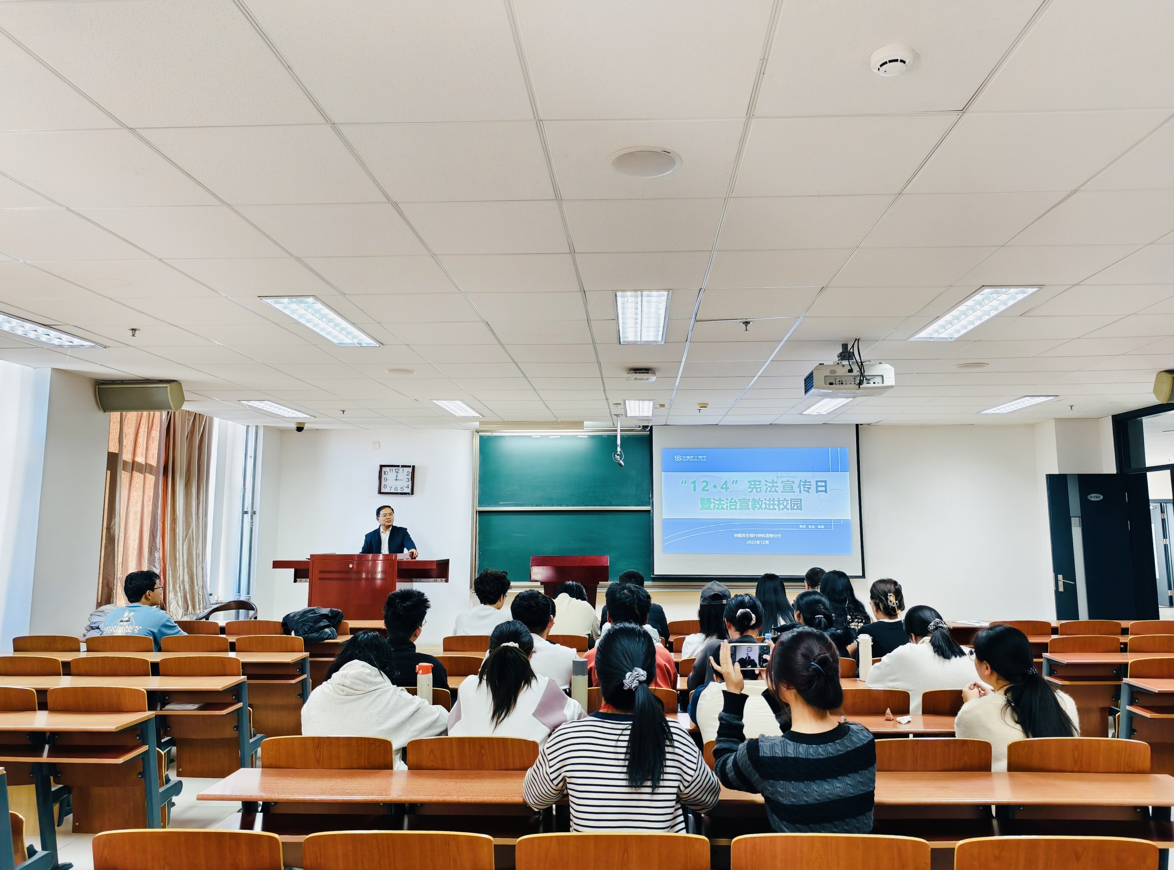 12月4日,在第11个国家宪法日来临之际,为深入贯彻落实“大力弘扬宪法精神,建设社会主义法治文化”的主题要求,中国民生银行信用卡中心呼和浩特分中心(下称“民生信用卡呼和浩特分中心”)携手民生银行呼和浩特分行走进内蒙古大学生命科学学院,共同举办“12.4宪法宣传日暨法治宣教进校园”活动,为百余名师生日带来一场接地气、有温度的法治宣讲。