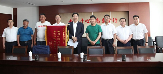 有付出必有回报,淳朴的农牧民用最传统的方式表达了对内蒙古银行锡林郭勒分行的赞许。6月13日,正蓝旗扎格斯台苏木、白音宝力格嘎查两委班子代表嘎查全体牧民将一面写有“牧民心贴心的银行 蒙古马精神的银行”的锦旗送到了内蒙古银行锡林郭勒分行。
