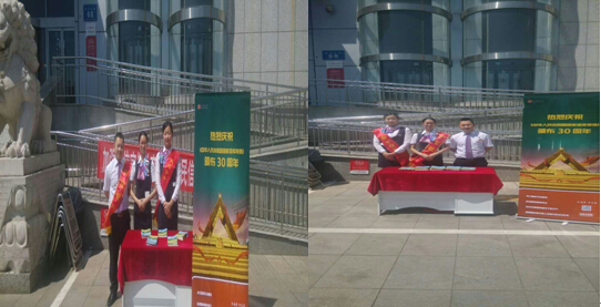 为宣传人民银行经理国库30 年来取得的成就,普及《中华人民共和国国家金库条例》、《中华人民共和国预算法》和国库相关知识,根据《中国人民银行呼和浩特中心支行办公室关于开展人民银行经理国库30 周年主题宣传活动的通知》的有关要求,中信银行呼和浩特新华广场支行在2015年7月22日积极开展户外宣传活动,受到了广大群众的欢迎,赢得了广大客户的信赖。