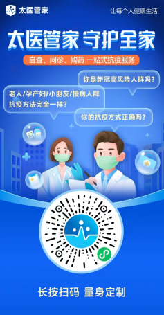 作为中国太保在大健康领域的重要布局,太医管家拥有近300人的自建医生服务团队,医生平均拥有10年临床经验,并深度绑定超500名外部专家。在自有医生和外部医生合作的“双医模式”下,太医管家已经为超过300万用户提供了专业便捷的服务。此次上线抗疫服务专区,是平台推动优质医疗资源普惠化的又一具体措施。太医管家将以“让每个人健康生活”为目标,助力大家“做好自己健康的第一责任人”。