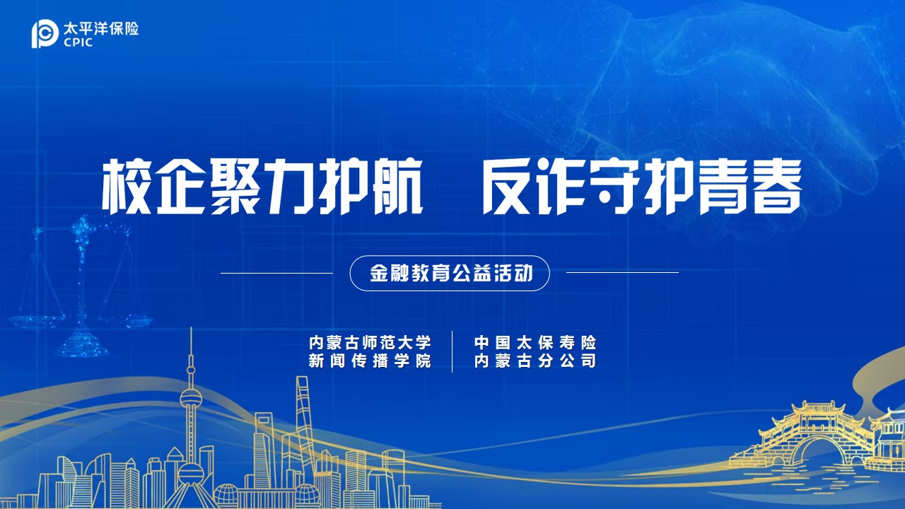 为切实履行企业社会责任,深刻践行金融政治性和人民性,扎实推进金融安全教育宣传进校园,提升青年学生金融素养与反诈能力,中国太保寿险内蒙古分公司于2026年4月17日,与内蒙古师范大学新闻传播学院联合举办“校企聚力护航 反诈守护青春”金融教育公益活动。