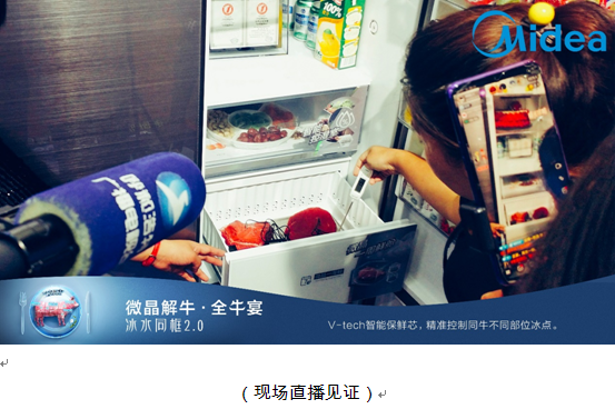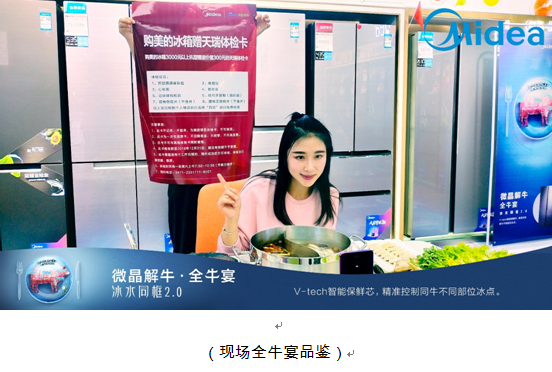 美的冰箱通过现场开展全牛宴品鉴的方式,让消费者和嘉宾感受美的微晶冰箱“不冻原鲜、口感如初”的成果。