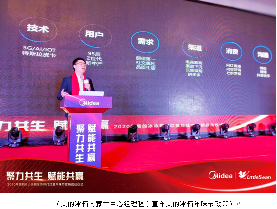 发布会上, 程东指出:“针对广大三四线城市消费者迎新春的场景需求,美的冰箱精心甄选了19分钟急速净味的美的净味系列冰箱作为年味节主推产品。经过全方位的市场与终端布局,净味系列产品已于内蒙古地区100多个门店全面亮相,为消费者开启福气新鲜中国年。”