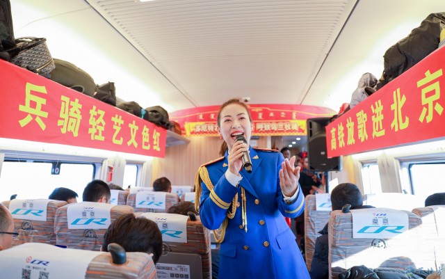 乌兰牧骑为乘客献歌 摄影/北方新报融媒体记者 牛天甲