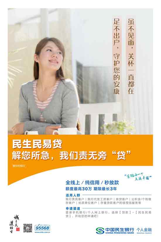 勠力同心,共克时艰。民生银行将继续优化个人消费贷款产品体系,提高业务服务能力,不断提供专业、高效、便捷的贷款服务,努力为战胜疫情贡献更大的力量!