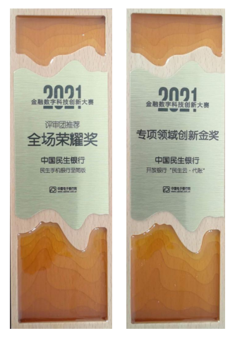 7月9日,由中国金融认证中心(CFCA)和中国电子银行联合宣传年主办的“2021中国金融数字科技创新大赛”结果揭晓,民生手机银行至简版荣获“全场荣耀奖”、开放银行“民生云·代账”荣获“专项领域创新金奖”。