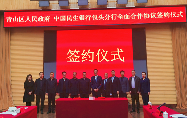 青山区委常委、政府常务副区长高锦明与中国民生银行包头分行行长周士刚代表双方签署战略合作协议。