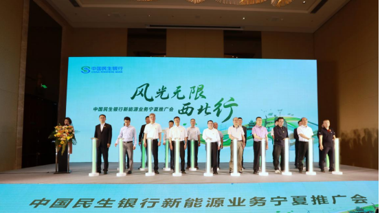 在与会嘉宾见证下,宁夏自治区政府、参会企业代表、民生银行三方携手开启了“风光无限西北行”新能源业务宁夏推广会。通过此次会议,民生银行进一步加强了与宁夏回族自治区政府、新能源实体企业的深度融合,未来三方将共同携手,价值共融、资源共享,赋能宁夏回族自治区实现低碳高质量发展。