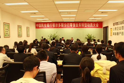 11月11日,鄂尔多斯分行举办了全行零售业务转型动员大会。分行全体员工参加了大会。分行党委委员、行长助理武志平主持了大会。