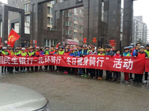 瑞雪迎冬,清风送爽。11月8日——2015年的立冬之日,初雪过后的呼和浩特又迎来了蒙蒙细雨,但雨雾天气并没有阻挡骑行爱好者的热情。由中国民生银行呼和浩特大南街支行与内蒙古北环骑行俱乐部联合举办的“冬日健身骑行”如期进行。