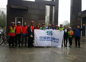10:20,骑行队伍在呼和浩特新华广场集结,并进行合影留念。 11:00,参与骑行的客户陆续回到呼和佳地社区支行,在社区门口集体合影留念后,开启了本次活动的第二个高潮——幸运大抽奖。中奖的客户将会领取由民生银行精心准备的骑行装备礼包。