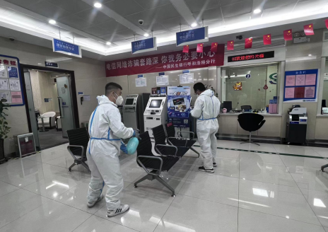 为严格按照监管机构及防疫政策要求,营业前,对厅堂环境进行全面消杀,精心做好营业设备、安防设施、电源电路检查;营业后,每天定期开展多次擦拭消毒和喷洒消毒工作,全面保障客户和员工的健康安全;摆放排队指示牌、等候座椅和“一米线”张贴标识,以安全距离保障客户安全;根据客户需求快速准确分流业务,将客户准确引导至不同区域或窗口的等候区,确保网点金融服务安全高效、平稳有序。