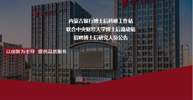 内蒙古银行博士后科研工作站联合中央财经大学博士后流动站,现面向社会公开招收5名全职博士后研究人员,竭诚欢迎优秀博士前来应聘。