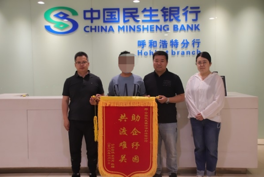 6月11日,客户珍珍餐饮负责人将一面写有“助企纾困共渡难关”的锦旗送到了民生银行呼和浩特分行,并高度赞扬呼和浩特大学东街支行想客户之所想,急客户之所急,主动为企业排忧解难。