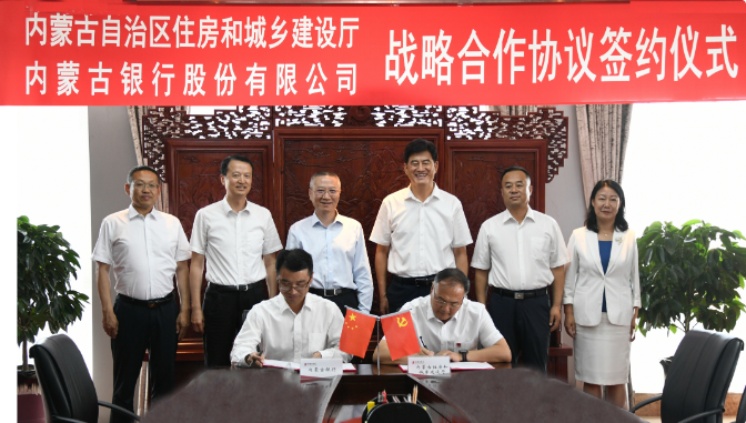 内蒙古银行党委委员、副行长刘新平,自治区住房和城乡建设厅一级巡视员揭新民分别代表双方签署协议。内蒙古银行行长助理申秀文及双方相关部门负责人参加签约仪式。