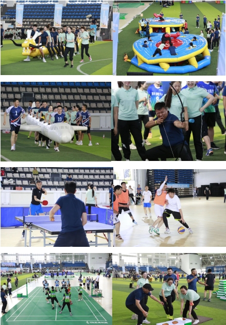 在比赛正式开始前,热身教练带领全体做热身操,活动筋骨,抖擞精神,引导大家进入比赛状态、为比赛蓄力。随后,各队伍分别进行了气排球、篮球、乒乓球、羽毛球等竞技项目和狼兔赛跑、羊了个羊、旱地龙舟、打地鼠等趣味项目的角逐。运动员以一往无前、奋勇争先的运动理念“过五关、斩六将”,顺利推进各项团队竞技有条不紊地进行,体现了民生运动员的智慧美、协调美、配合默契美和拼搏精神美。