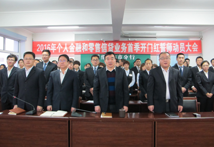 会上,石国华行长对“首战”活动进行了全面动员部署,要求全体干部员工一是统一思想,认识到位,步调一致,取长补短。统一目标、措施、办法和行动,把好理想、信念、价值观“总开关”,筑牢发展根基;二是干部率先垂范,主动担责,政策到位,知难而上。全面从严治党,贯彻三严三实,“一岗双责”,优化调配激励机制,与全员共享发展成果,不断注入发展动力,弘扬“正能量”;三是管理层各尽其职,做好全方位的服务、督导、管理、考核,形成上下左右相互衔接支撑的经营管理链条,保障分行健康持续发展。号召全员上下一心,团结一致,奋勇拼搏,努力实现2016年“首战”全面告捷。