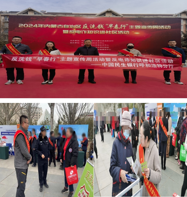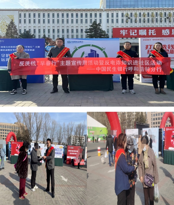 为进一步激发人民群众对反洗钱、反电诈、反网赌知识学习的积极性和主动性,切实提高全区人民群众防诈防赌意识和识诈识赌能力。中国民生银行呼和浩特分行开展反洗钱“早春行”主题宣传周暨反电诈知识进社区宣传活动。