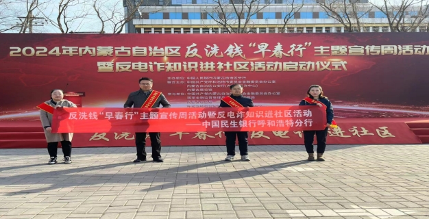 2024年 3月15日上午,中国民生银行呼和浩特分行参加“2024年内蒙古自治区反洗钱‘早春行’主题宣传周活动暨反电诈知识进社区活动”启动仪式,启动仪式在内蒙古展览馆举行。分行通过摆放宣传展板、设立咨询台、发放宣传资料等形式,向前来咨询的群众介绍反洗钱、反电诈相关知识。尤其向参加活动的老年人提示切勿出租出借账户,保管好自己的身份证、银行卡,对陌生电话、短信谨慎回复,通过不同的案例及角度宣讲常见的诈骗方式与手段,切实提升人民群众防诈防赌意识和识诈识赌能力。