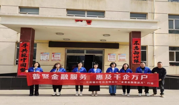 近日,中信银行鄂尔多斯分行积极响应落实监管要求,开展以“普聚金融服务,惠及千企万户”为主题的“普惠金融推进月”活动,加大普惠金融业务的宣传与推广,践行社会责任。