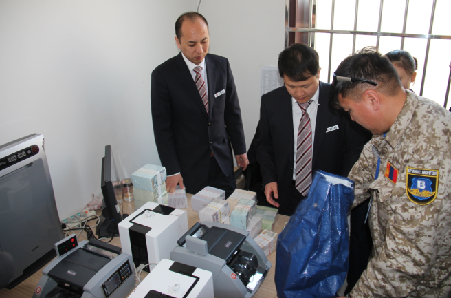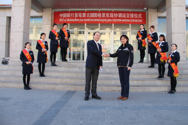 4月5日,经人民银行和蒙古央行批准,中国银行二连浩特市分行从蒙古郭勒蒙特银行调运1亿蒙古图格里克(以下简称蒙图)现钞,成功实现了我行首笔由境外调运蒙图现钞。