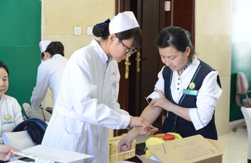 讲座之后,农行赤峰分行城区员工积极加入到无偿献血的队伍中。填表、测血压、化验、抽血都在一种轻松、愉快的氛围中进行,被采血者脸上洋溢的是兴奋、自豪的表情。他们高高挽起的衣袖,见证了他们对生活的无比热爱,同时也体现了他们心底无私的奉献精神。他们有的是初次献血,有的已达10多次,年龄最小的25岁,最大的已55岁。