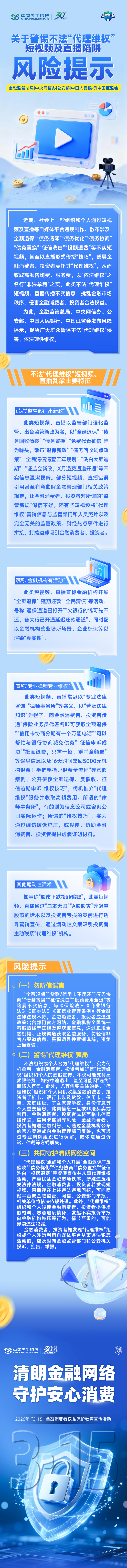 民生银行风险提示:警惕不法“代理维权”短视频及直播陷阱