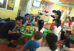 活动流程开场舞《水果拳》,集体游戏《小手牵大手,我们一起来问好》,集体游戏《水果蹲》,亲子比赛(趣味互动环节):0-3岁《我是乖宝宝》、《给妈妈运水果》,3-4岁《袋鼠运粮》,5-6岁《你划我猜水果大考验》,亲子集体游戏:超级爸爸组《吃西瓜大赛》 ,超级妈妈组《削苹果大赛》,米奇来了(制作水果拼盘),美食分享。共有五组家庭参加了活动。