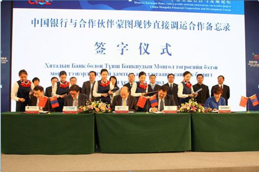 2015年10月23日,借助首届中国-蒙古国博览会的东风,中国银行与蒙古国贸易发展银行、郭勒莫特银行、瀚银行以及布林克(蒙古)公司联合签署蒙古国图格里克现钞直接调运合作备忘录,宣布中蒙双方在金融领域的务实合作又迈出新的一步。